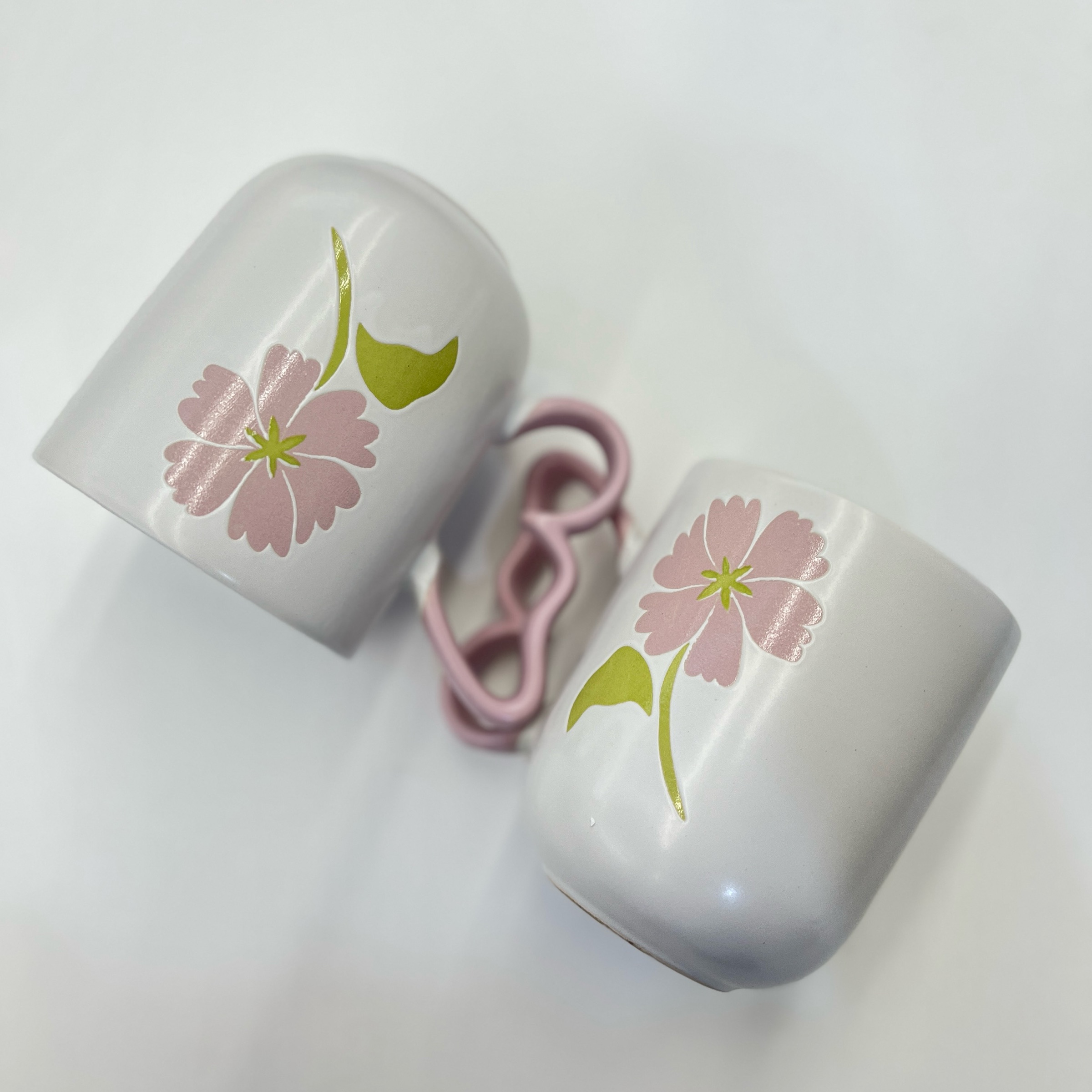 ماگ سرامیکی دستساز طرح دور گل قرمز