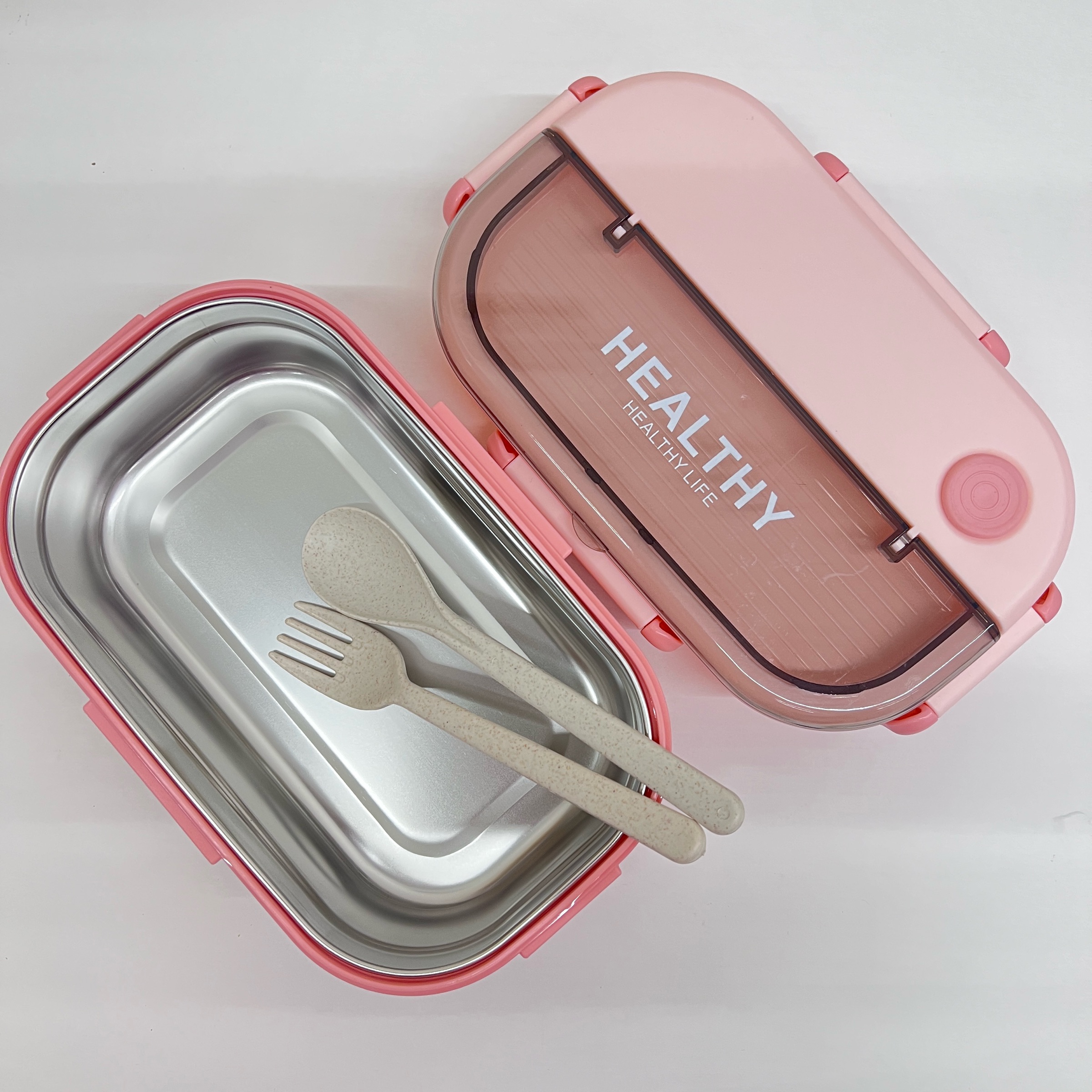 لانچ باکس گیلاسی داخل استیل دارای چهارقفل همراه قاشق و چنگال * رنگ صورتی کار بدون روکش میباشد دو خش خیلی محو داره و دارای تخفیف ویژه.