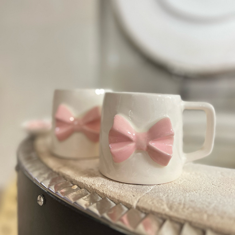 ماگ دستساز سرامیکی پاپیون برجسته صورتی