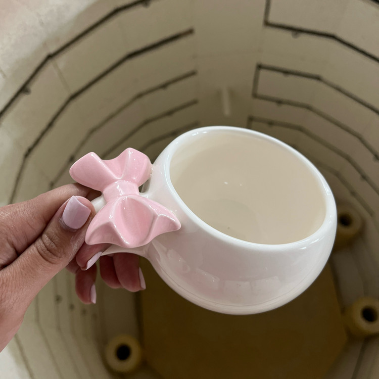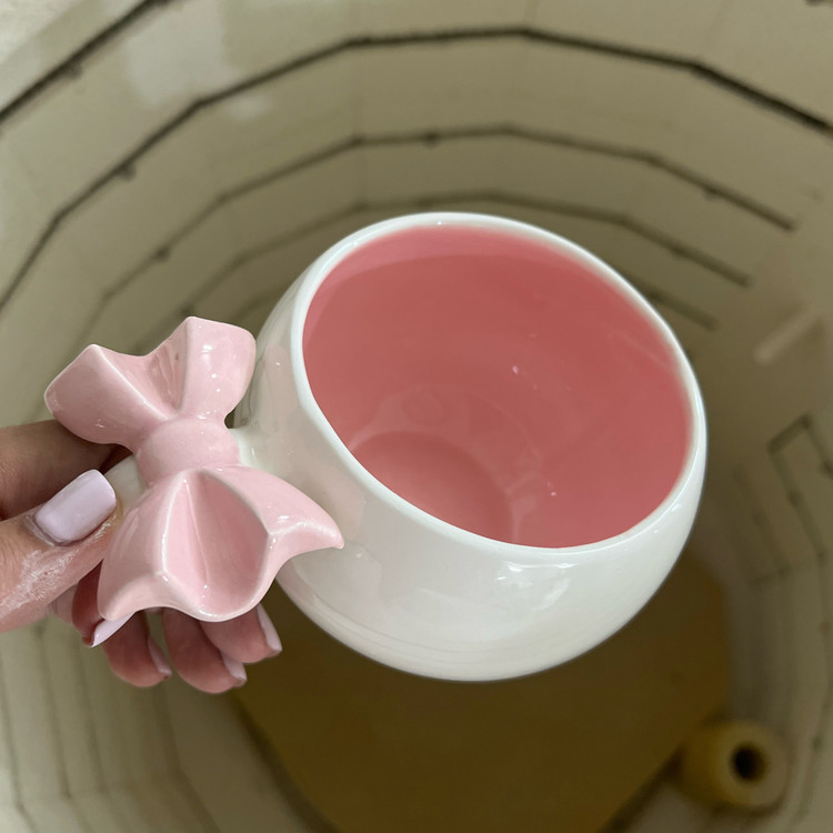 ماگ سرامیکی گرد دستساز پاپیون برجسته صورتی