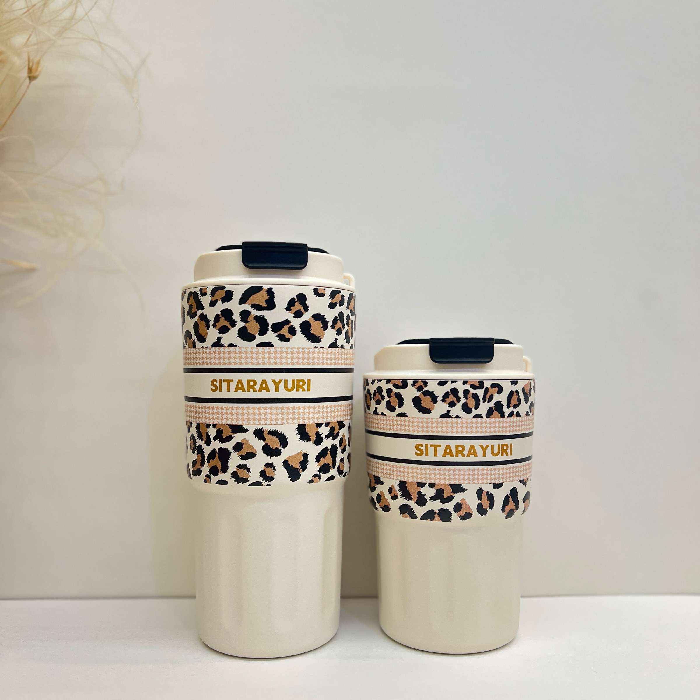 تراول ماگ سیتارایوری وارداتی برند باکیفیت طرح پلنگی در چهاررنگ متنوع، استیل باکیفیت ۳۰۴ در دو سایز ۳۶۰ و ۶۰۰ میلی لیتر فاقد نشتی و دارای بند می باشد.